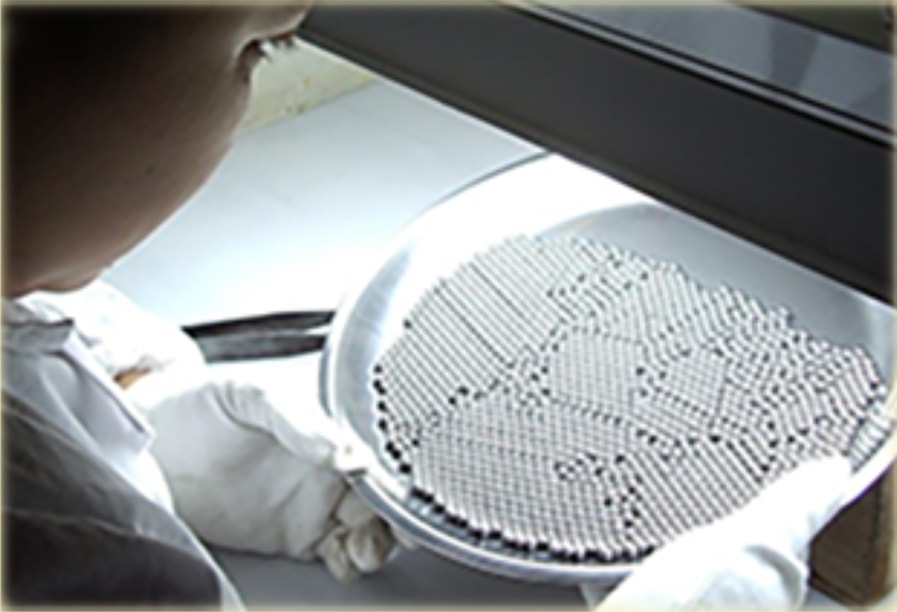 高炭素クロム軸受鋼材を使用し、主にボールベアリング用としてあらゆる産業機械、輸送機械などの回転部分に使用されます。材料はJIS G 4805高炭素クロム軸受鋼材(SUJ2)、鋼球の企画はJIS B1501に準じます。